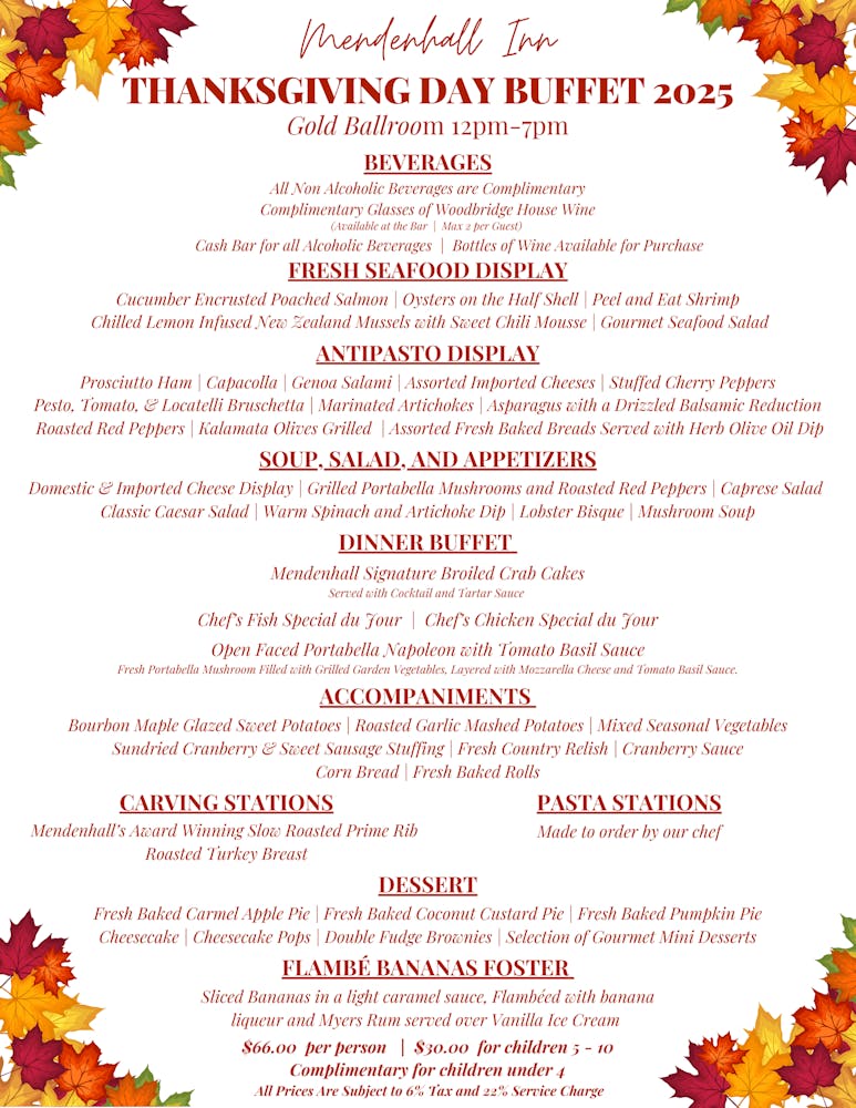For all Buffet Reservations you MUST CALL IN. 610-388-1181.
